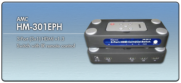 The DigiView 3-Port (3X1) 1.3 HDMI CERTIFIED switch is the ideal solution for multiple HD devices to share a single HDMI display. This new v1.3 switch offers the enhancement of support for high bandwidth HDMI 1.3 signals. It is fully compatible with all prior versions of HDMI and will support all the new features including DEEP COLOR (high color bit depth) and enhanced multi-channel digital audio formats (Dolby TrueHD, DTS-HD Master Audio). The HDMI Switcher allows access to multiple HDMI devices, such as DVD players and Satellite set-top boxes to one HDMI display