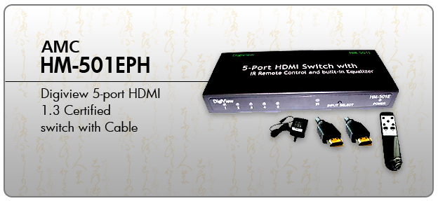 The Digiview HM-501 HDMI 1.3 Certified Switch allows up to 5 HDMI devices, such as DVD players and Satellite set-top boxes to share a single HDMI display (HDTV or Projector).