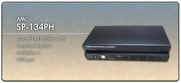 The AMC DIGI Media 4 Port HDMI 1.3 V Distribution Amplified Splitter is a distribution hub that sends the same video output to 4 HDTV digital screens. It is a flexible solution to accommodate multiple displays.