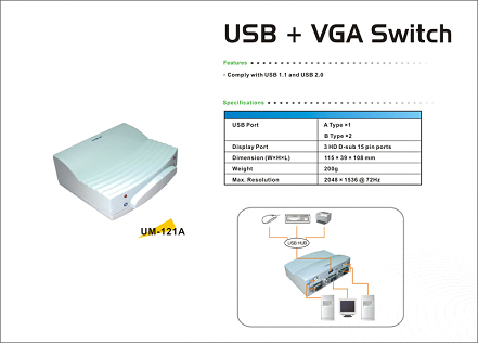1. Looking for a VGA manual switch? This is be the ideal supplement with high resolution up to 2048 X 1536. The unit is built-in a USB Port so you can connect to a USB HUB and link to use USB Mice/Keyboard to become a KVM Switch as well.
